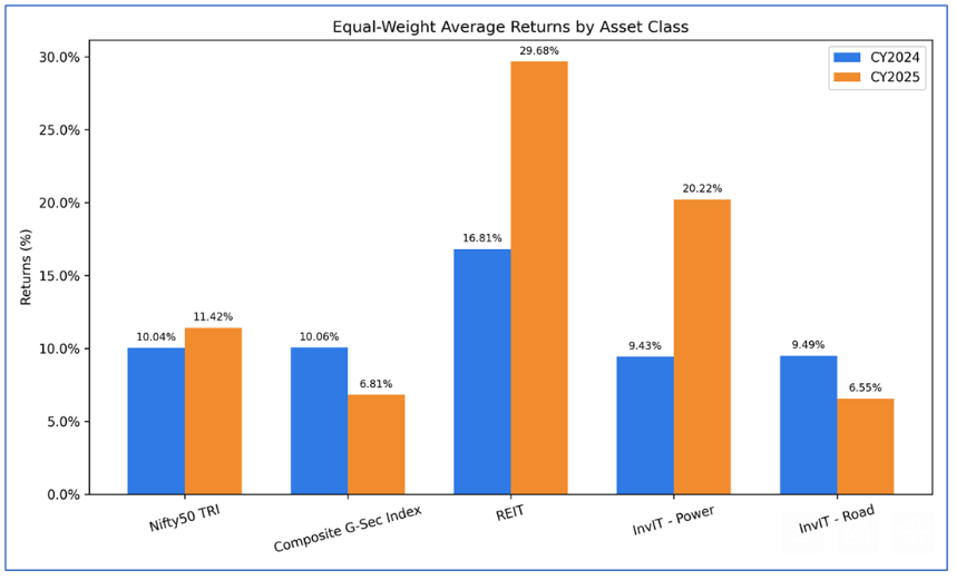 In 2025, listed REITs and InvITs significantly outperformed traditional benchmarks, delivering a strong 19.55% return on an equal weight basis.