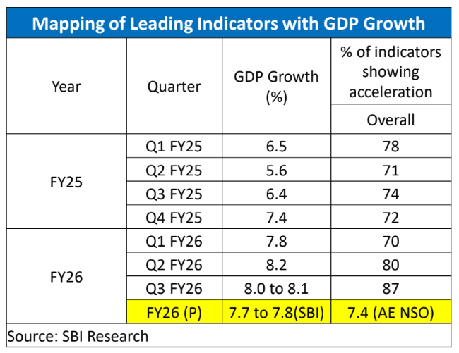 “We track 50 leading indicators in consumption and demand, Agri, Industry, service and other indicators, which indicate significant jump in Q3 FY26 growth (as compared to Q4 FY25). The % of indicators showing acceleration has increased to 87% in Q3, compared to 80% in Q2,” says Dr. Ghosh.