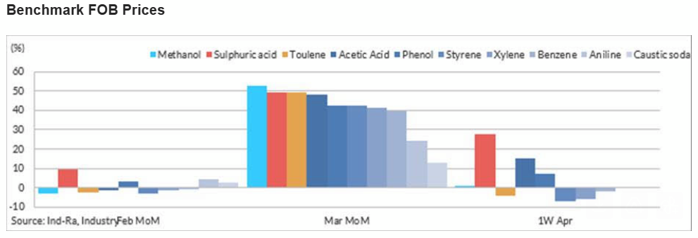 Ind-Ra believes the government’s announcement of a three-month customs duty exemption on about 40 chemicals would provide moderate, short-term relief, with landed costs likely to decline by 5%–10% (depending on the product and prior duty structure), bringing some relief to chemical companies dependent on these feedstocks and relevant downstream industries, such as like plastics, auto, and paints. Domestic producers of these chemicals will see a reduction in the import-parity price.